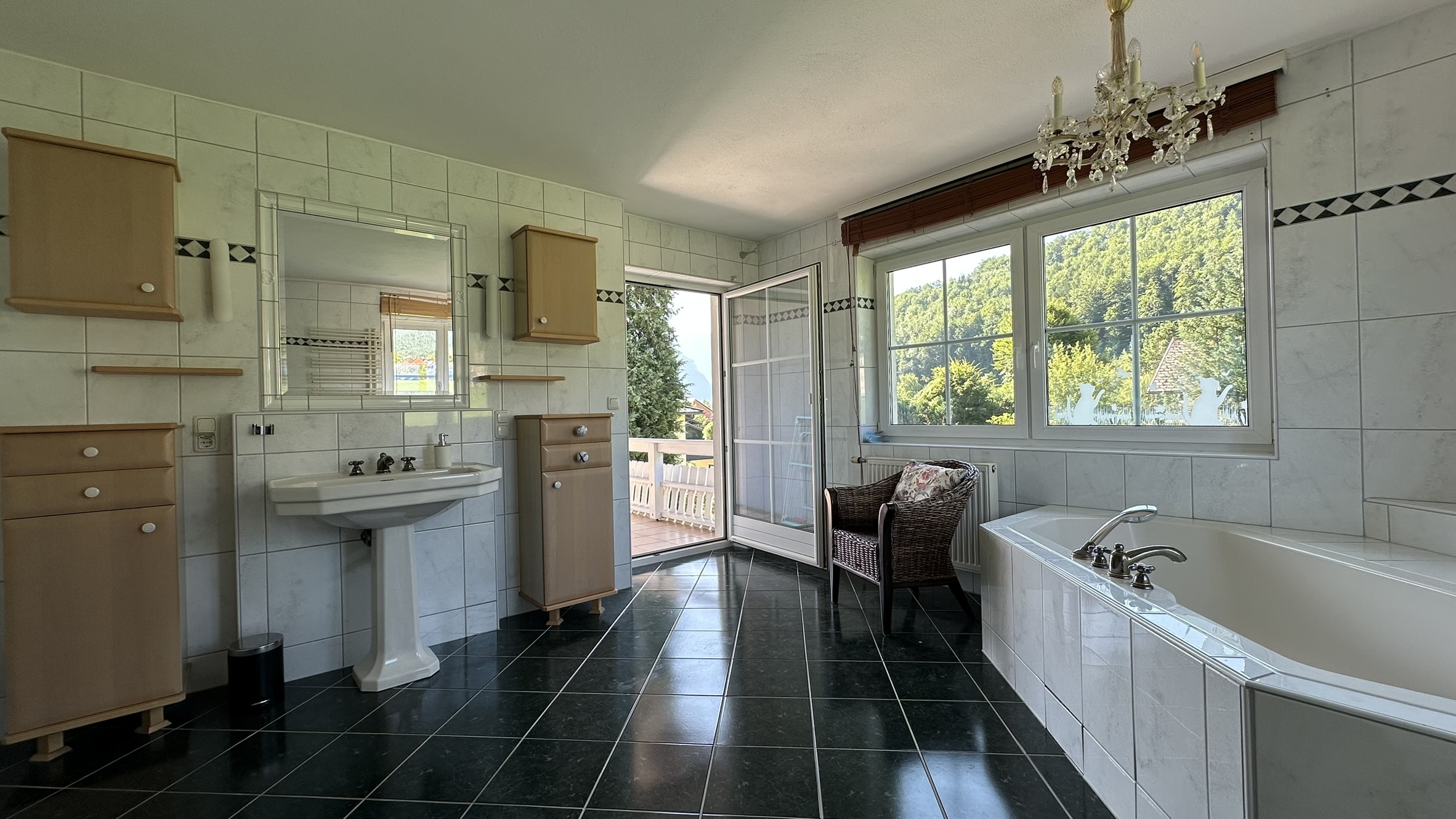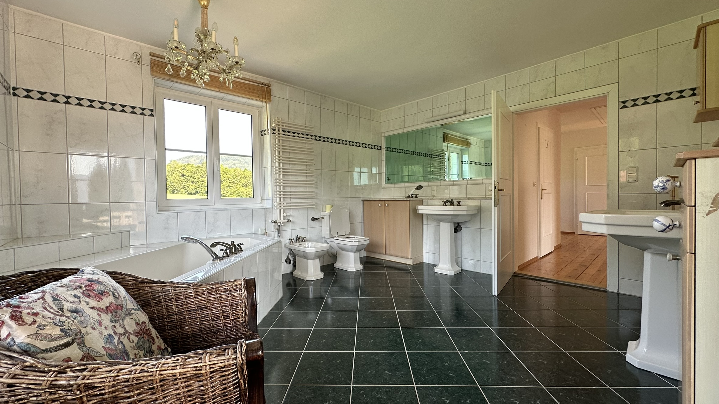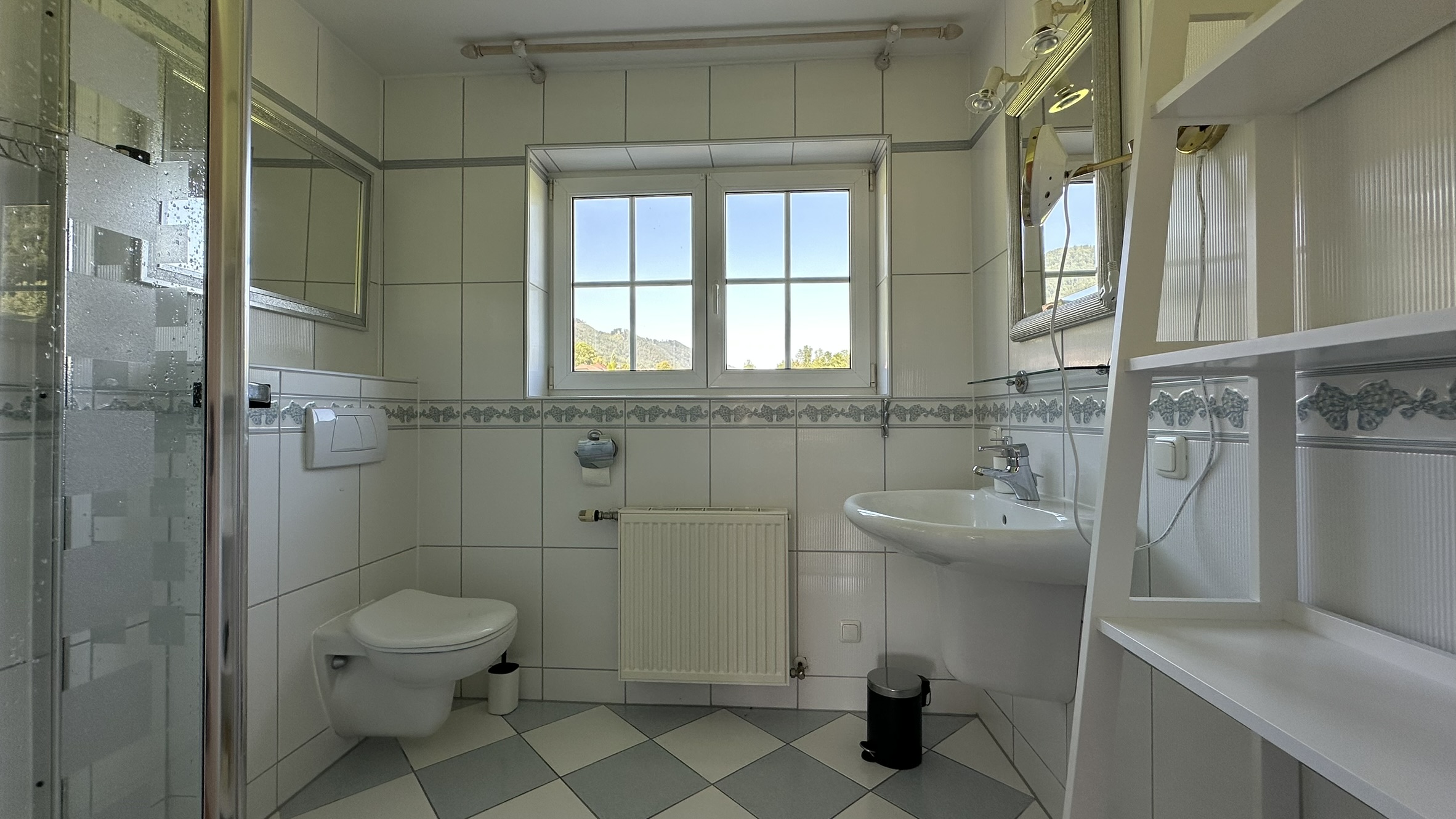 Im Obergeschoß befinden sich zwei Badezimmer mit Dusche und ein WC. Im Erdgeschoß gibt es ein zusätzliches WC.