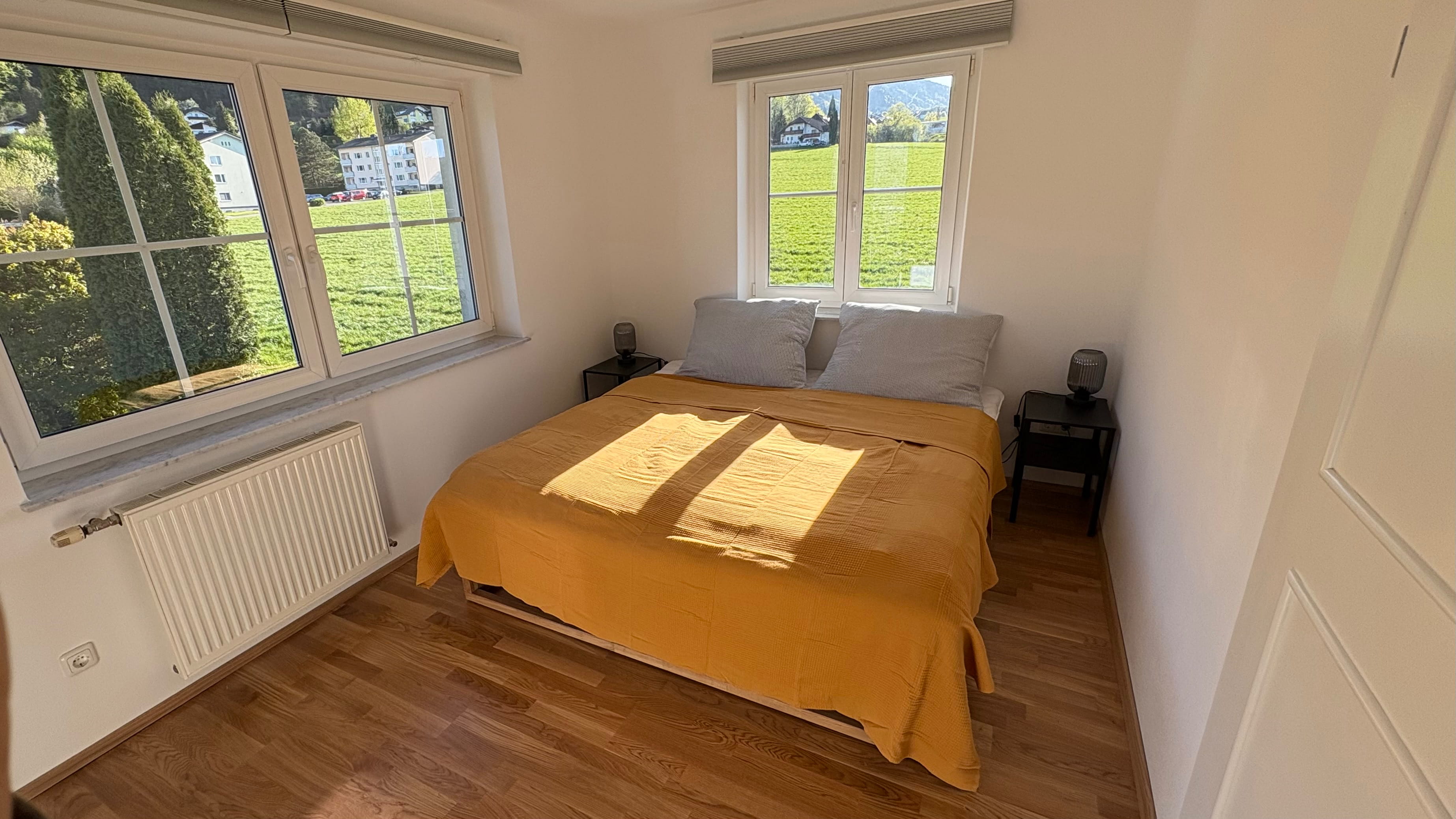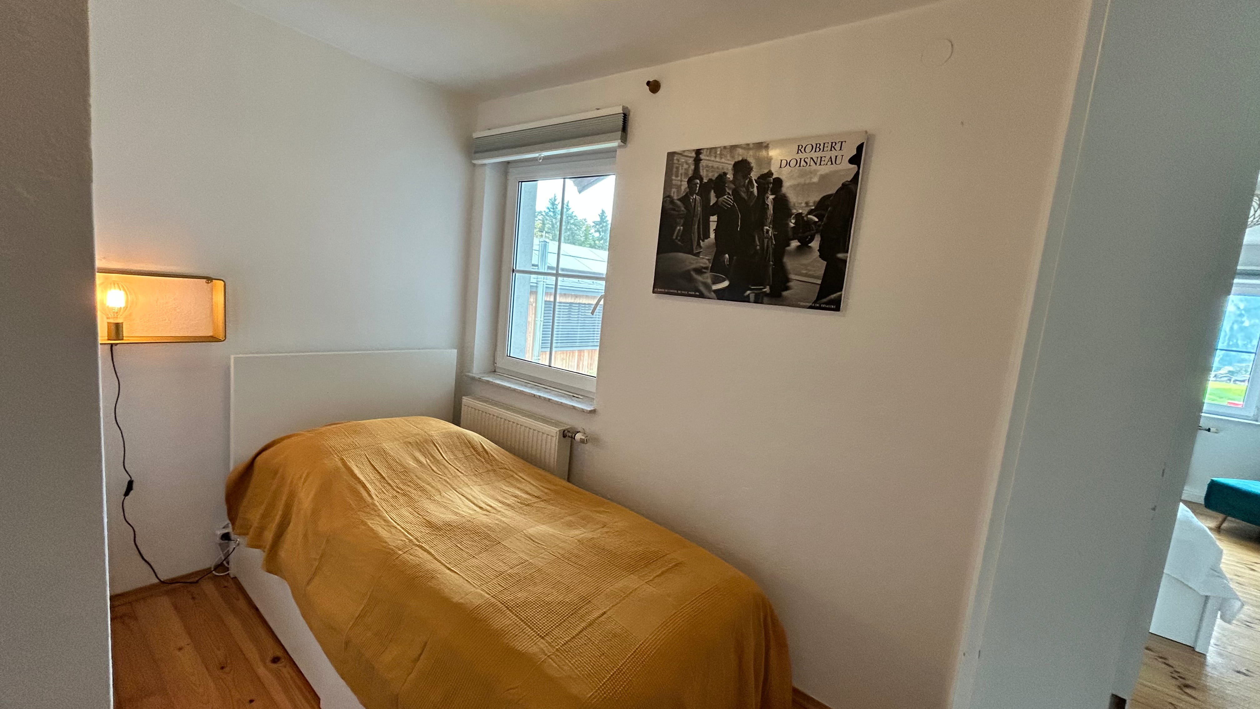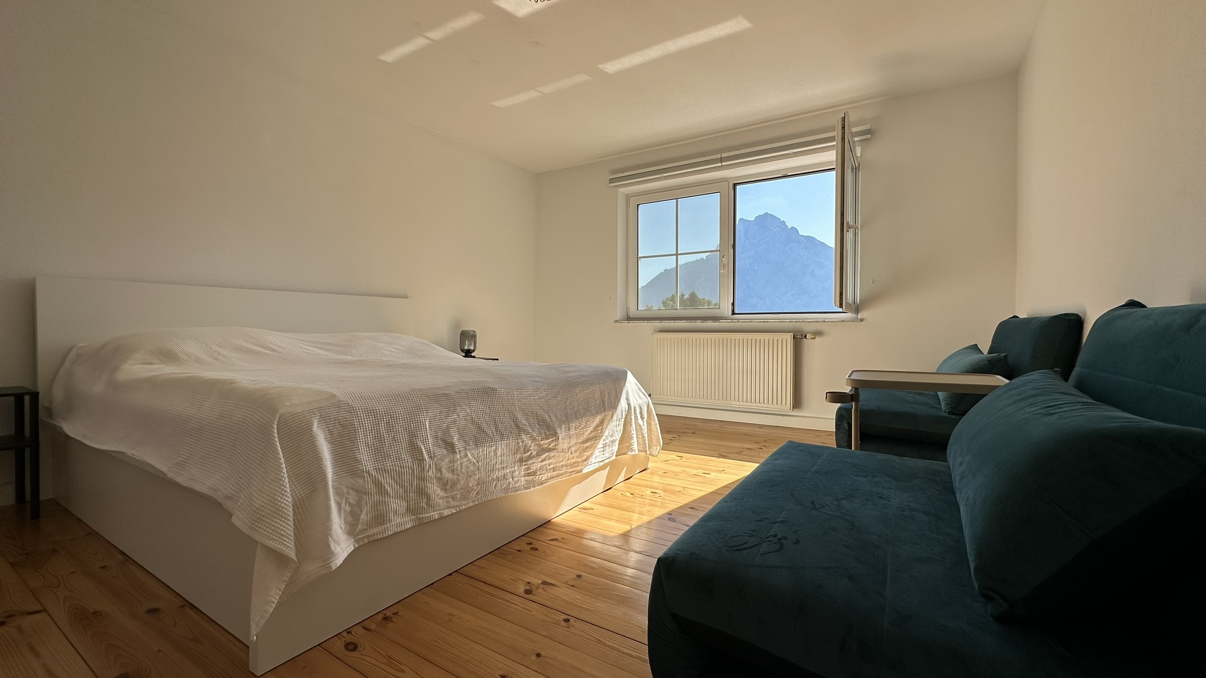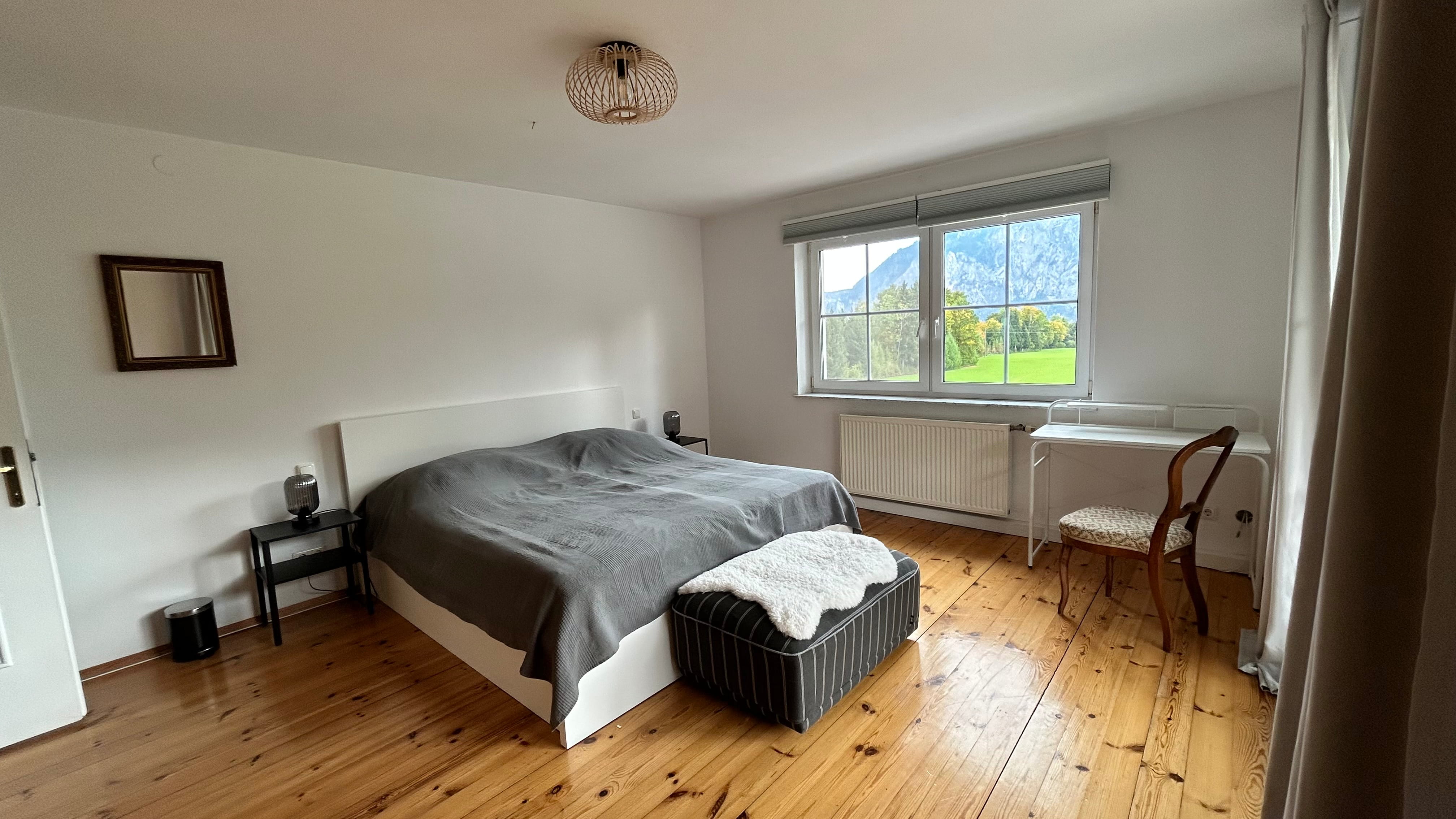 Im Obergeschoß befinden sich ein Einzelzimmer und drei Doppelzimmer mit zwei ausklappbaren Zustellbetten. Zwei der Doppelzimmer haben Zugang zum Balkon, von dem man eine Panorama Aussicht auf den Traunstein und Traunsee genießt.